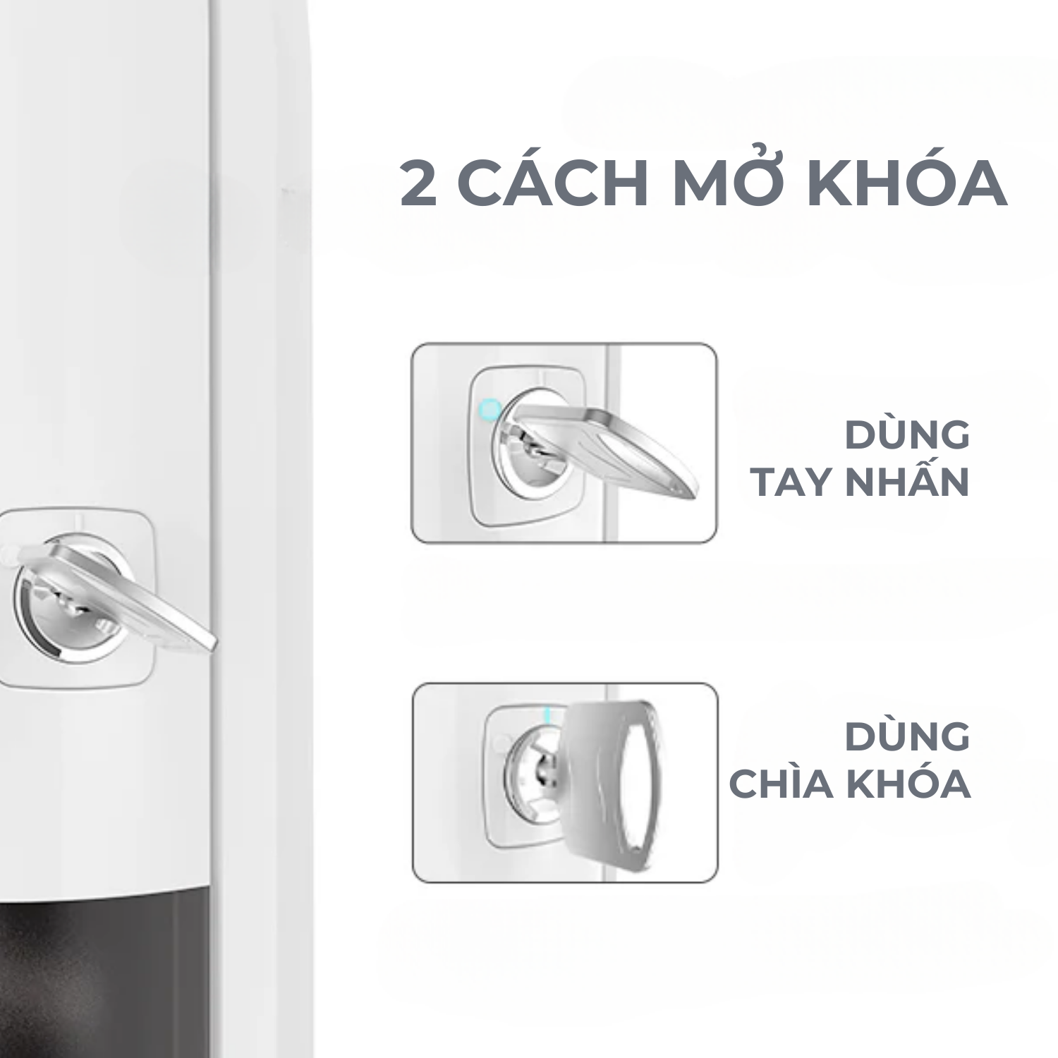 + Khóa: Nhấn mở hoặc dùng chìa khóa