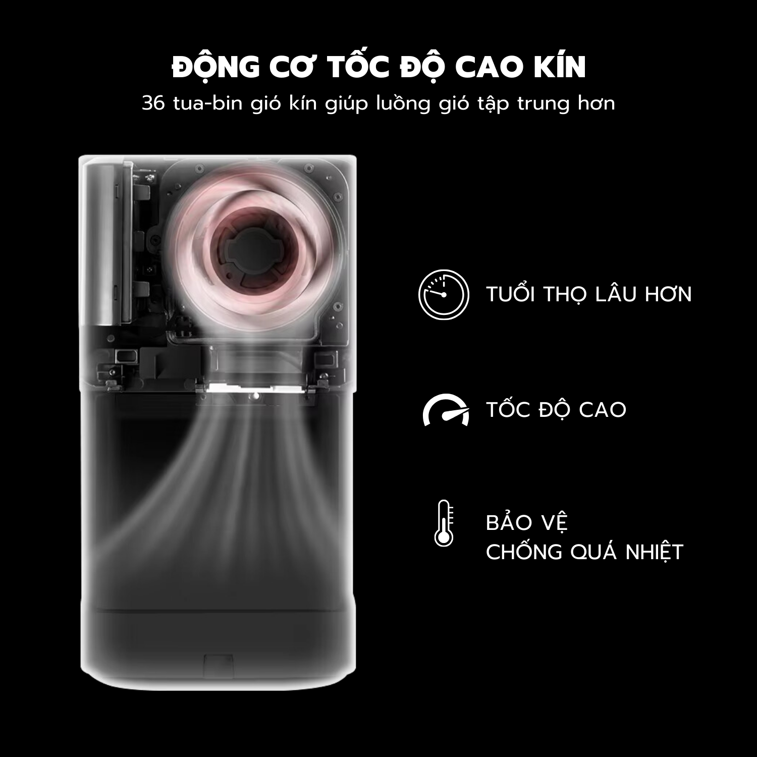 + Nhiệt độ gió: 45–65°C