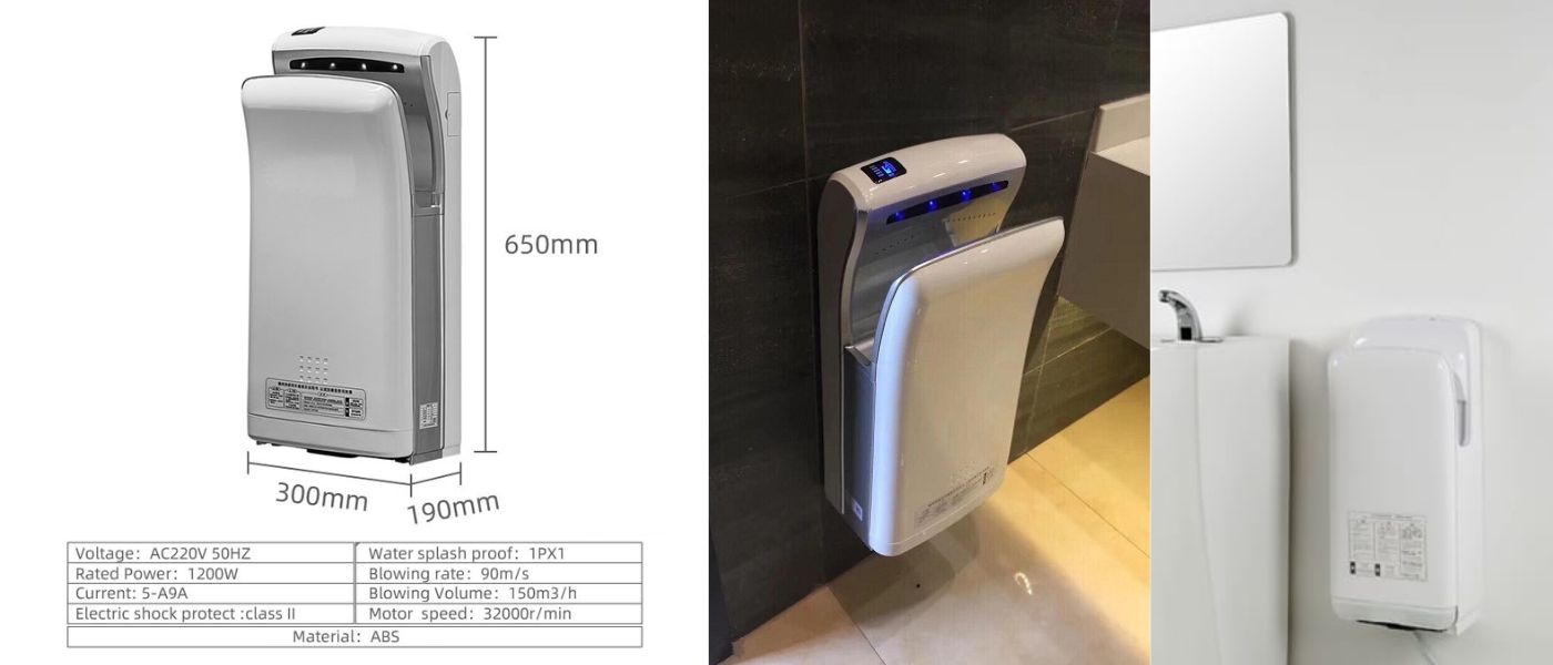 Mẫu HSD-A904 có công suất 1800W, phù hợp cho các khu vực có lượng người sử dụng đông đúc. Chất liệu nhựa ABS cao cấp, bền bỉ và dễ vệ sinh, cùng với hệ thống cảm biến nhạy bén giúp máy hoạt động mượt mà.