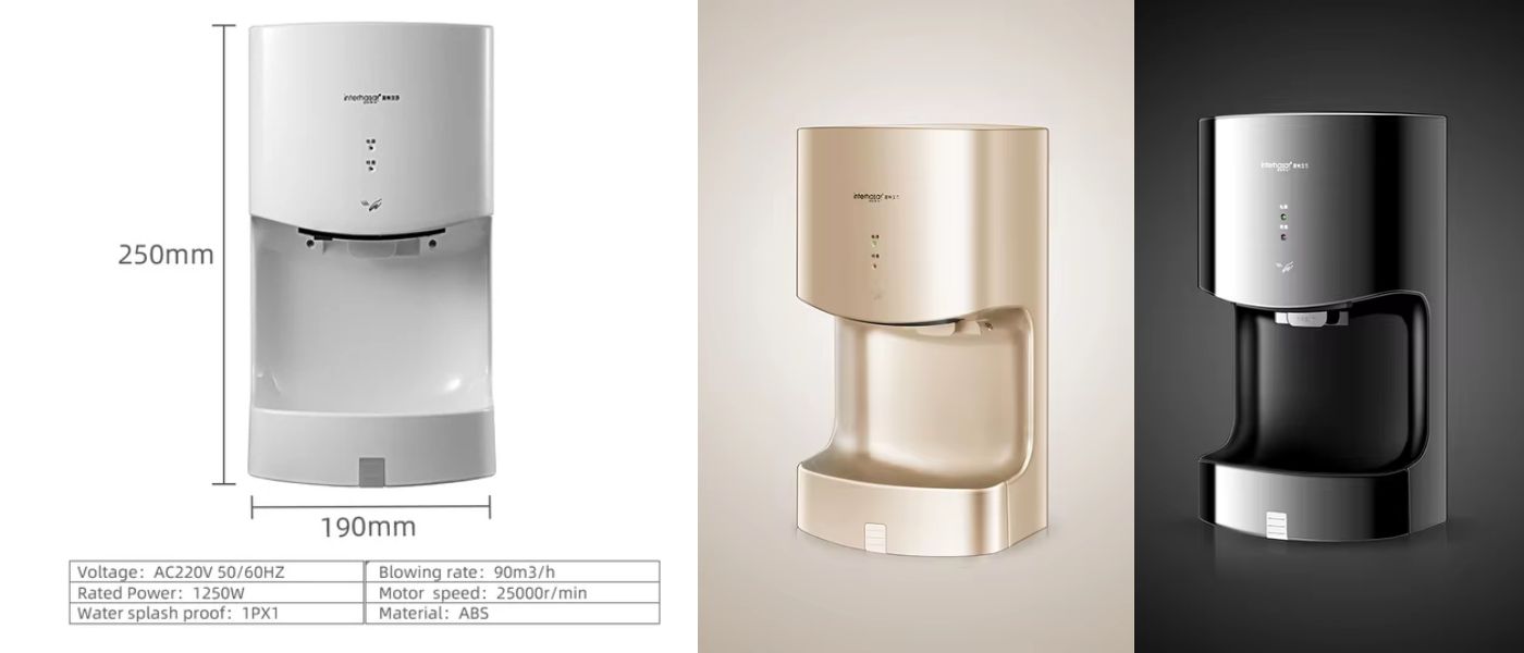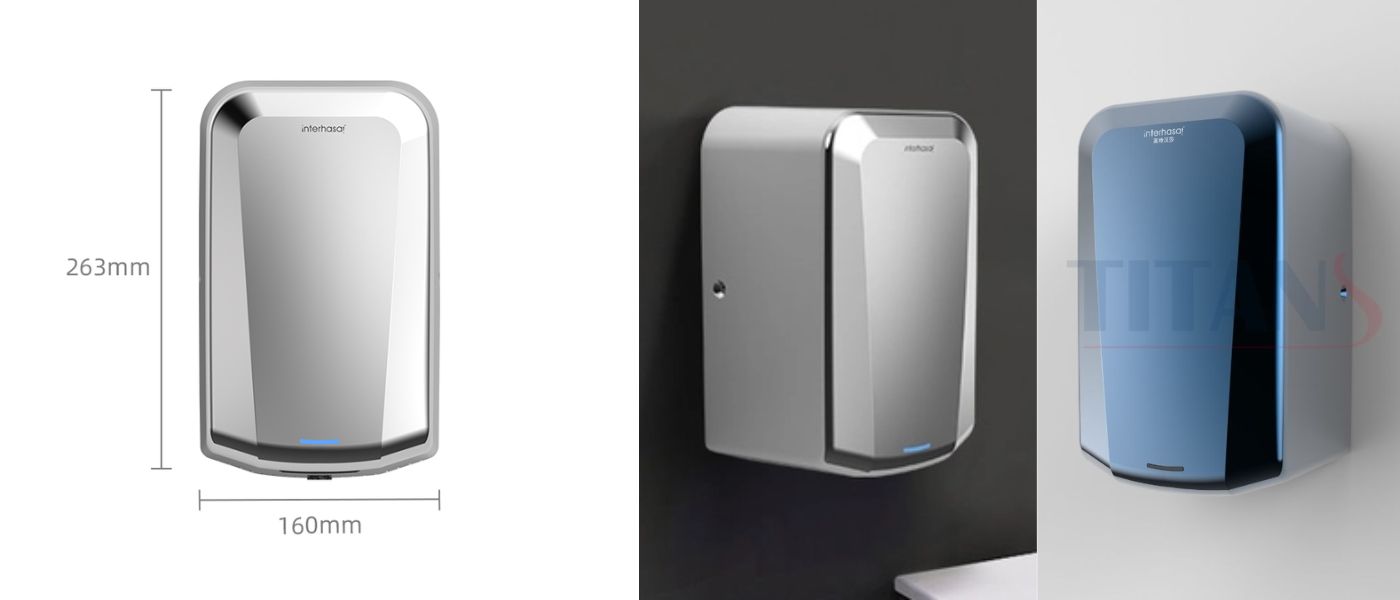 + Chất liệu của máy sấy tay không chỉ ảnh hưởng đến độ bền mà còn quyết định đến vẻ ngoài và khả năng chịu va đập của máy. Interhasa thường sử dụng chất liệu thép không gỉ hoặc nhựa ABS cao cấp, giúp máy vừa bền bỉ, chống ăn mòn vừa có thiết kế sang trọng, hiện đại, phù hợp với nhiều không gian sử dụng.